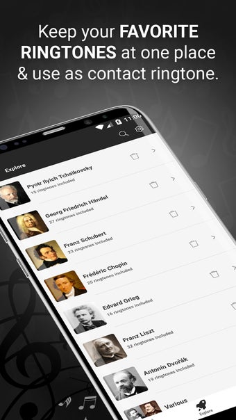 La mejor colección de tonos de llamada de música clásica en tu dispositivo Android. La música clásica es atemporal y nunca pasará de moda. Lo mejor de esta aplicación es que te ofrece una amplia selección de tonos de Mozart y otros compositores famosos. Estas melodías son perfectas para tonos de llamada y notificaciones, ya que pueden utilizarse para mejorar el sonido de tu teléfono.